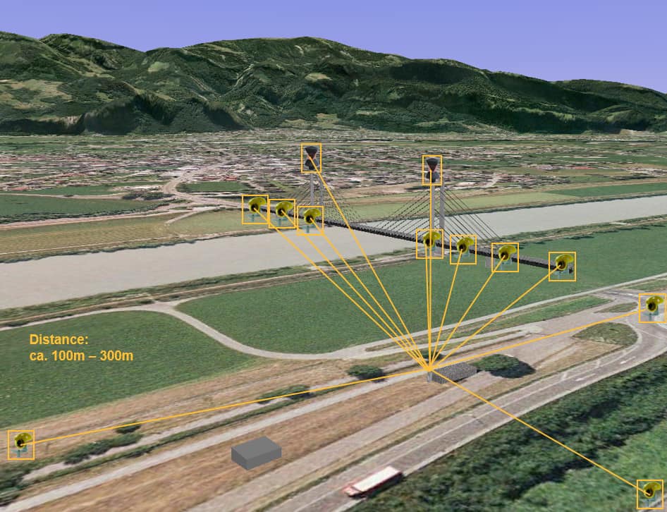 Hệ thống này có thể lắp đặt ứng dụng ở nhiều lĩnh vực công trình như nhà cao tầng, cầu dây văng, đường hầm/mái cơ đường hầm, đường sát trên cao, ở những vùng có nguy cơ sạt lở/sụt lún cao gần hồ thủy điện, đập thủy điện, đề điều, taluy đường giao thông, vùng đất yếu/núi gần khu dân cư đông đúc,...thật khó có thể trang bị lắp đặt hết tất cả nhưng nơi có thể xảy ra sạt lở những chúng ta hoàn toàn có thể trang bị lắp đặt sẵn ở những nơi có nguy cơ sạt lớn mà tầm ảnh hưởng của nó lớn tới hoạt động xã hội, nơi đông dân cư sinh sống/đi lại...